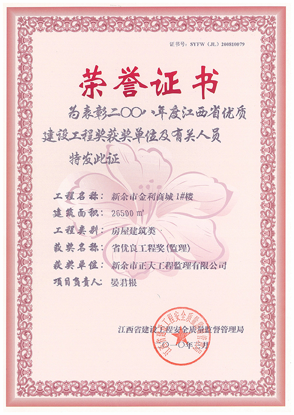 新余市正大工程監(jiān)理有限公司依托新余市建筑設(shè)計(jì)院,于1995年11月成立,是新余市開展監(jiān)理工作最早的監(jiān)理單位,本公司具有建設(shè)部核發(fā)的房屋建筑工程甲級(jí)監(jiān)理資質(zhì)、市政公用工程乙級(jí)監(jiān)理資質(zhì)、國(guó)家人防辦核發(fā)的人防工程監(jiān)理乙級(jí)資質(zhì)。我公司始終堅(jiān)持“客戶至上、質(zhì)量第一、信守合同”的經(jīng)營(yíng)理念;追求“為社會(huì)創(chuàng)造價(jià)值、為業(yè)主創(chuàng)造效益、為自身謀求發(fā)展”的經(jīng)營(yíng)宗旨;遵循“守法、誠(chéng)信、公正、科學(xué)、優(yōu)質(zhì)、高效”的工作原則,以雄厚的技術(shù)力量、完善的管理制度、豐富的監(jiān)理經(jīng)驗(yàn)、良好的企業(yè)信譽(yù)迅速成為我市監(jiān)理行業(yè)的一支新銳力量!